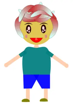 Cartoon character in colorful clothes with her arms spread.