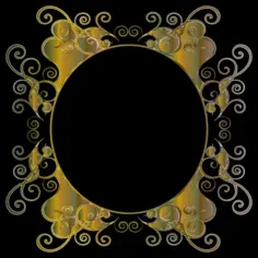Gold decor on a round frame.