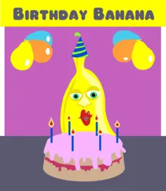Cartoon image of a banana celebrating birthday.