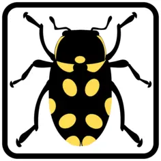 Vector drawing of bug sign icon. Black and yellow clip art of insect.