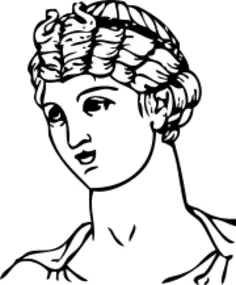 Vector graphics of a female hairstyle with simple bun. Black and white portrait of woman with Grecian hair style.